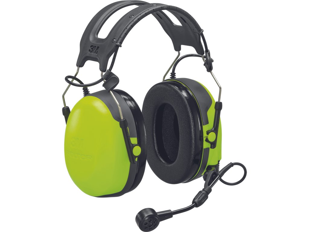 mušlové chrániče 3M™ PELTOR™ CH-3 využívají kabelový systém FLX2 pro jednoduché a spolehlivé připojení příslušenství; jasně žlutá barva zajišťuje vysokou viditelnost; mikrofon s potlačením okolního hluku s krytím IP68 je optimalizován do vysoce hlučného prostředí; pružná náhlavní páska se přizpůsobí libovolnému tvaru hlavy a poskytuje maximální pohodlí
