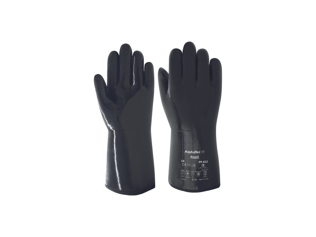 The AlphaTec® 09-022 heat and cold resistant glove features a special insulated Hi-Lo glove with a quilted cotton lining for use in both hot and cold conditions that allows for intermittent handling of hot liquids up to 180˚C and cold temperatures down to -25 C. In addition, the AlphaTec® 09-022 Hand Protection Gloves offer excellent broad-spectrum chemical resistance, protecting against oils, acids, caustics, alcohols and solvents, while their cotton lining increases grip and puncture resistance.