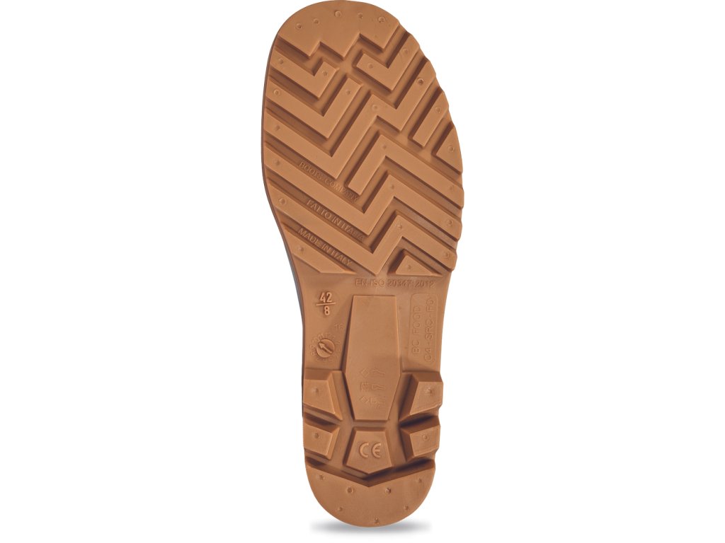 Antistatické vysoké čižmy z PVC a nitrilu odolné voči pôsobeniu rastlinných a živočíšnych tukov s podrážkou s hlbokým dezénom. Norma: EN ISO 20347:2012