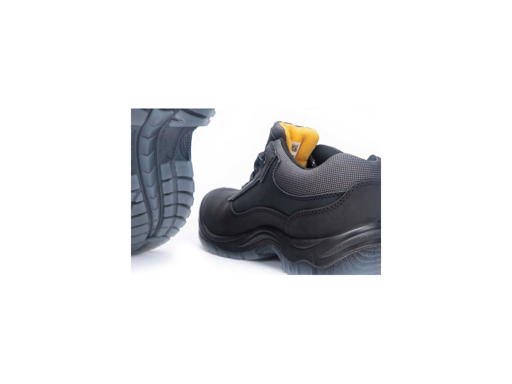• bezpečnostné poltopánky s nekovovou tužinkou a aramidovou stielkou odolnou proti prepichnutiu • podošva z PU/TPU • zvršok z kvalitnej kože – nubuk