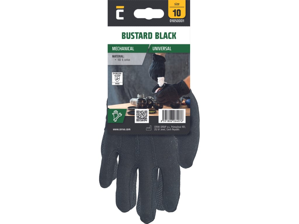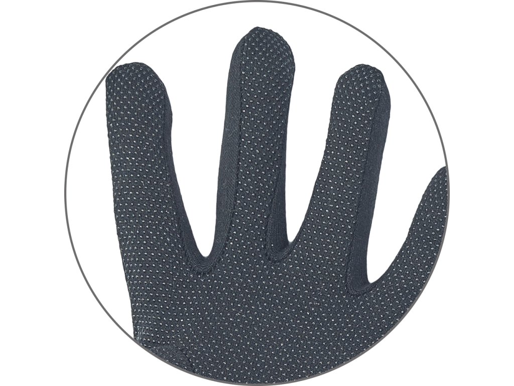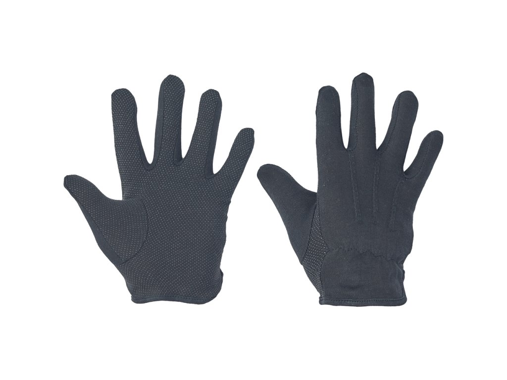• rukavice šité z bavlneného úpletu • s PVC terčíkmi v dlani a na prstoch • pružinka na hornej časti zápästia • bez manžety