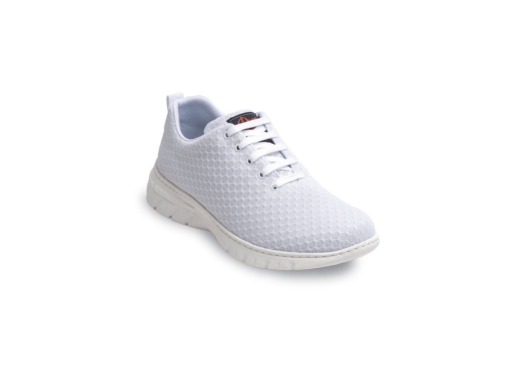 • špeciálny typ obuvi s bezšvovým zvrškom a so šnúrkami • unikátny materiál D'COVER DRY® je priedušný a zároveň odpudzujúce tekutiny • konštrukcia obuvi, vypchatá textilná podšívka D'DRY® a polstrovaný golier členku sú tak navrhnuté, aby sa zabránilo tvorbe pľuzgierov • obuv má rovný tvar s guľatou špičkou a pevnú podporu päty • bnútorná polstrovaná látková stielka je vyrobená z tepelne tvarovanej polyuretánovej peny s antibakteriálnou úpravou a aktívnym uhlím • podrážka na báze materiálu EVA XL EXTRALIGHT® je ultra ľahká, pohodlná, flexibilná a protišmyková, s plochým dizajnom podložky, lemovanými hranami a širokými drážkami na uľahčenie odvodu tekutín • obuv je vhodná na pranie v práčke do 40º • perfektný model pre zamestnancov segmentu HoReCa