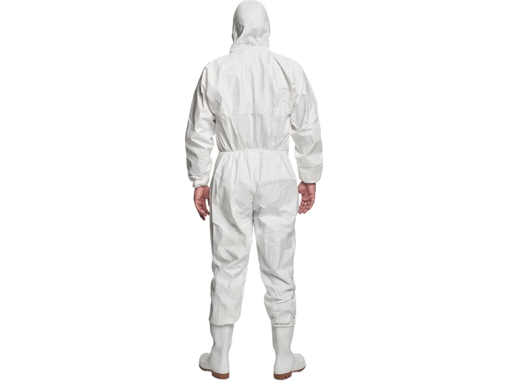 • ochranný antistatický jednorazový overal s kapucňou, mikroporézna paropriepustná vrstva • klopa na zips a elastické rukávy a nohavice • chráni pred nebezpečnými mikroorganizmami • v ochrane proti postriekaniu kvapalnými chemikáliami patrí do kategórie CE III • v ochrane proti prieniku pevných látok a ochrane proti aerosólom typ 5B • v ochrane proti postriekaniu kvapalnými chemikáliami typ 6B • v ochrane proti rádioaktívnemu zamoreniu kategória 1