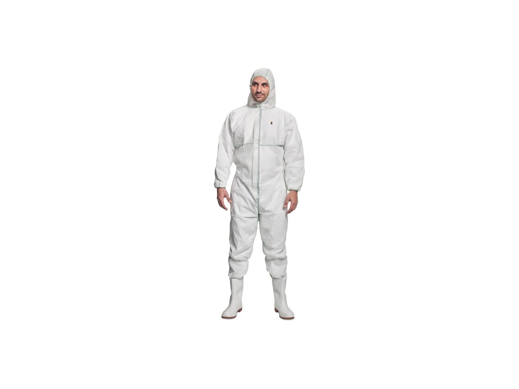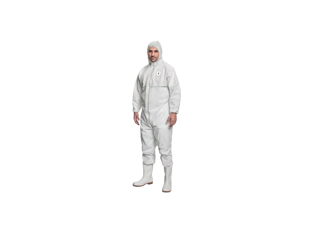 • ochranná kombinéza s kapucňou a príklopkou na zipse • s gumičkou sťahovateľnými rukávmi a nohavicami • odev patrí do kategórie CE III, typ 5 a 6 • je odolný niektorým chemikáliám a prieniku rádioaktívnych častíc