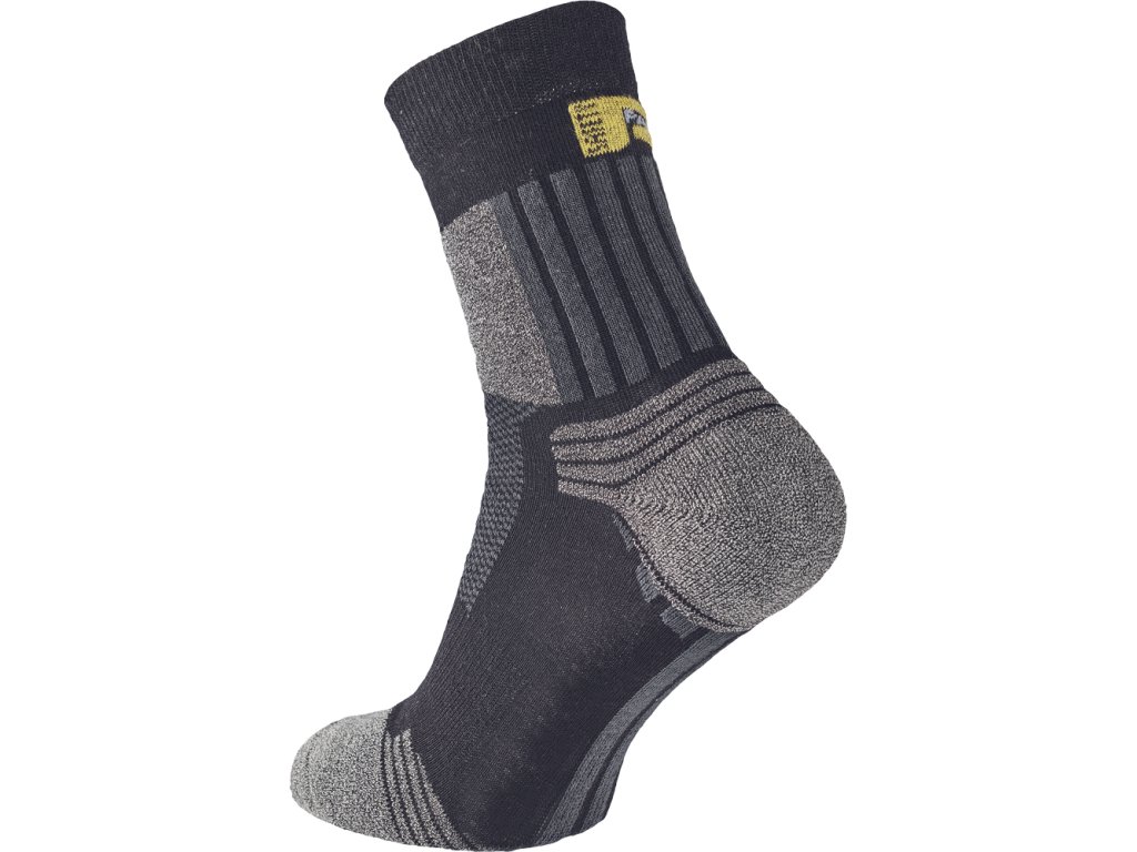 • špeciálne ponožky vytvorené do náročného pracovného prostredia, ale aj na aktívne využitie voľného času • ponožky DABIH sú vyvinuté s použitím najnovších technológií vo výrobe a kombináciou špeciálne upravovaných vlákien, ktoré zaručujú: • maximálne pohodlný neškrtiaci lem • maximálnu ochranu nohy pri extrémnej pracovnej záťaži • ideálny odvod potu • dokonalú tepelnú izoláciu • veľmi jemné šitie na špičke • elastickú bandáž proti posunu ponožky v obuvi • mäkko podložené zóny na ochranu nohy pred otlakmi a pľuzgiermi • vetracie kanáliky zaručia ideálnu klímu aj pri extrémnej záťaži