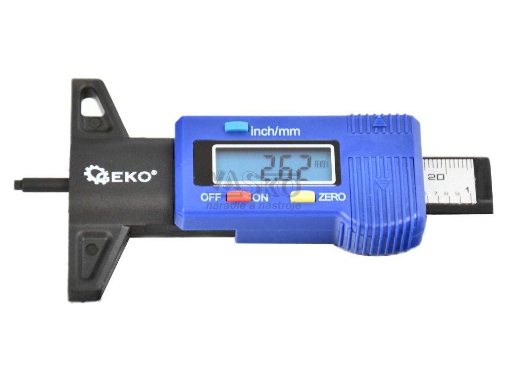 Digitálny merač hĺbky dezénu pneumatiky, 0-25,4 mm, GEKO