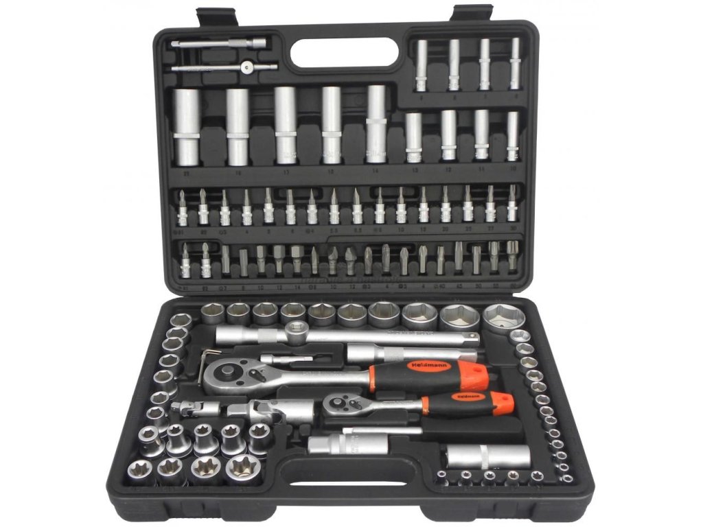 Gola sada 1/4 a 1/2 ", 108 dielna. Univerzálna súprava určená pre servis, služby, ako aj pre domáce použitie. V plastovom kufri, HEIDMAN.