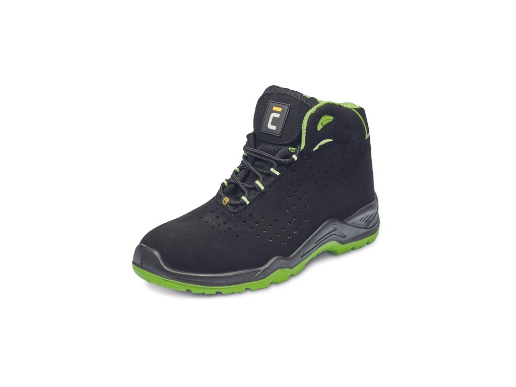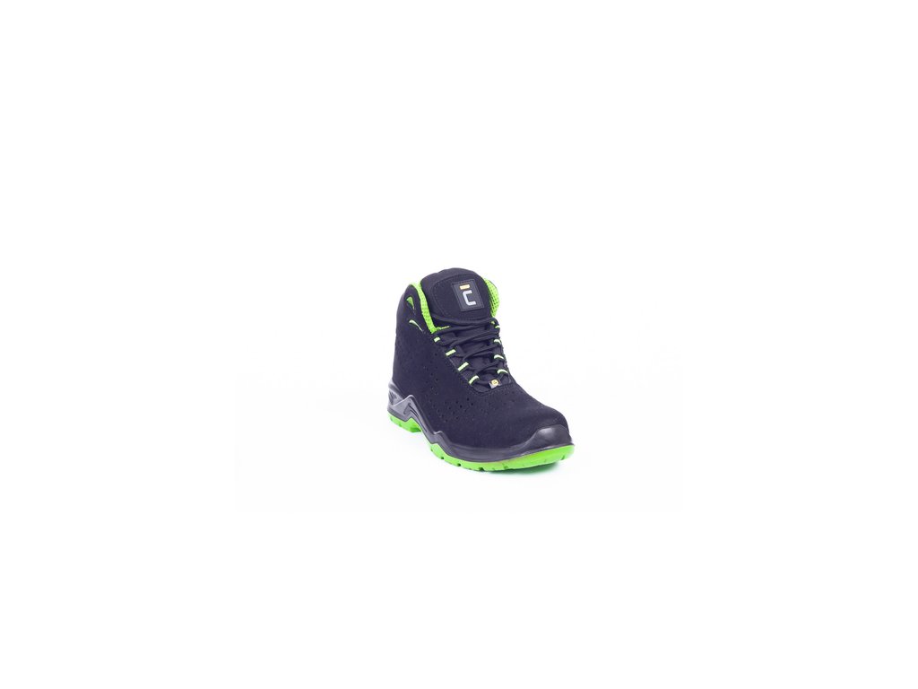 • bezpečnostná členková obuv v modernej čierno-zelenej farebnej kombinácii • zvršok obuvi je vyrobený z mikrovlákna a perforovaný po celej dĺžke • protišmyková podrážka z polyuretánu s dvojitou hustotou zaručuje nielen pohodlie, ale aj maximálnu bezpečnosť pri každom kroku • obuv je vybavená pohodlnou perforovanou vnútornou stielkou, ktorá zaručuje pohodlie a cirkuláciu vzduchu vo vnútri obuvi • absorpcia energie v oblasti päty tlmí nárazy a znižuje pocit únavy nôh • vďaka bezpečnostnej kompozitnej špici obuv spĺňa požiadavky normy EN ISO 20345: 2011 • to znamená, že nohy sú chránené proti stlačeniu silou do 15 kN alebo pádu bremena do 20 kg z výšky 1 m • nohy sú chránené aj zospodu vďaka kompozitnej medzipodrážke proti prepichnutiu • obuv neobsahuje kovové časti a je vybavená funkciou ESD • preto je ideálnym modelom do vnútorných priestorov a citlivých prostredí, kde je potrebné zabrániť iskreniu z elektrostatického výboja, alebo do priestorov vybavených bezpečnostným rámom