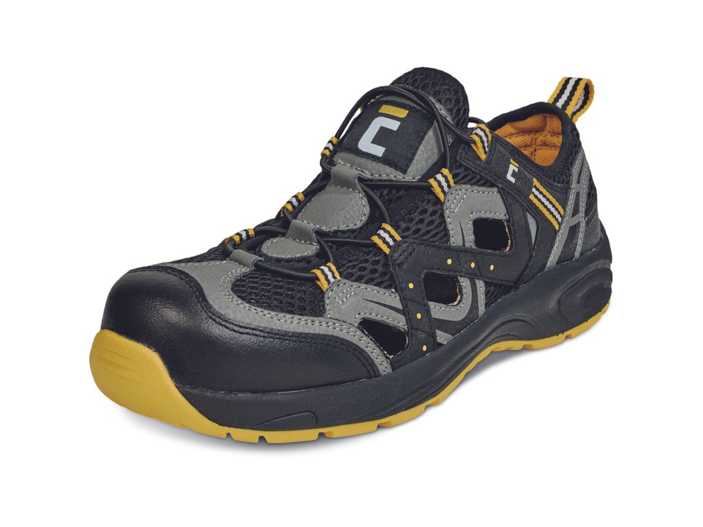 Bezpečnostné sandále s kompozitnou bezpečnostnou špicou. Podošva - Phylon/Guma. Zvršok je vyrobený v kombinácii kože a priedušnej sieťoviny. Žlté doplnky zvyšujú viditeľnosť užívateľa.