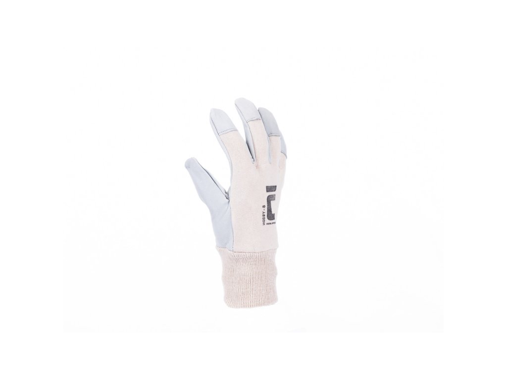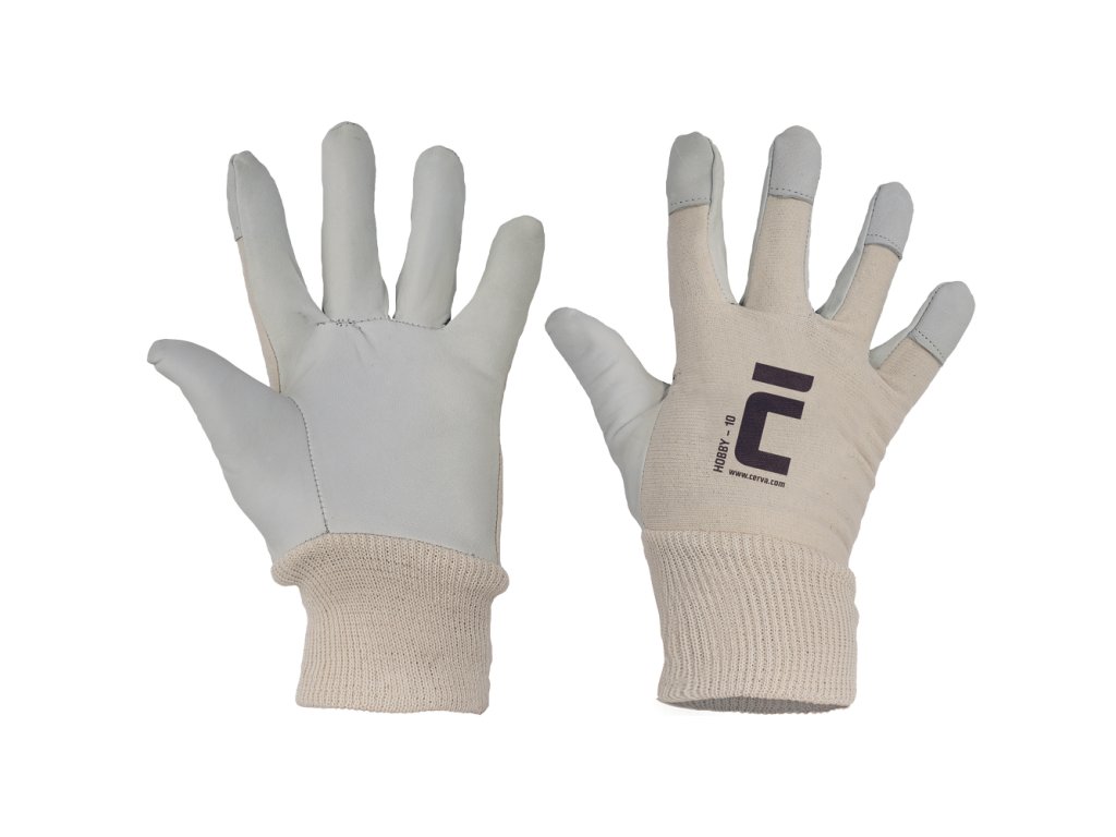 • rukavice z lícovej ovčiny v dlani • bavlnená tkanina na chrbte, s prekrytými špičkami prstov • náplet na zápästí