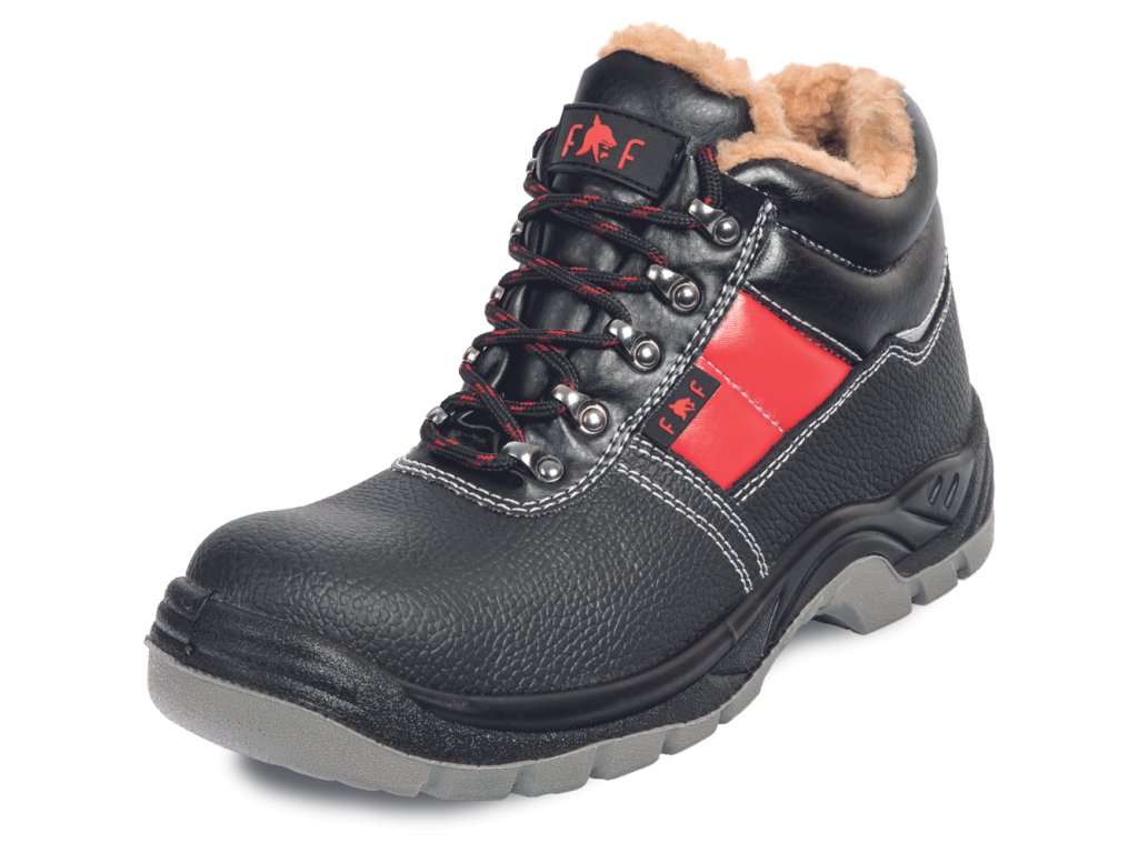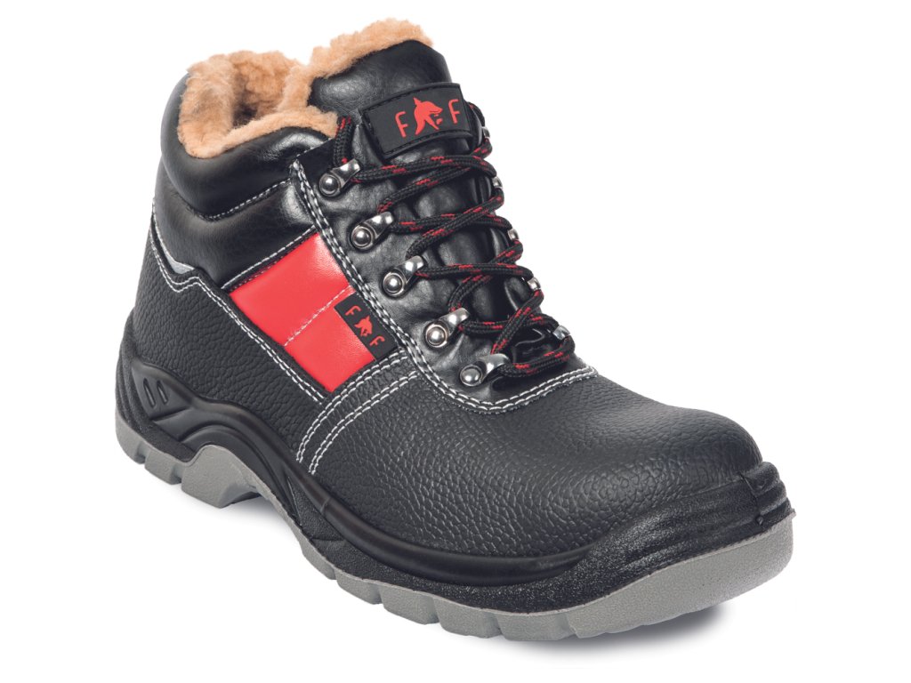 • bezpečnostná termoizolačná členková obuv s oceľovou špičkou a stielkou proti prepichnutiu • PU/PU podrážka odolná voči olejom • zvršok • reliéfna štiepaná koža s vodoodolnou úpravou • strieborné reflexné doplnky • izolačná "kožušinová" podšívka spĺňajúca certifikáciu CI (chladová izolácia)