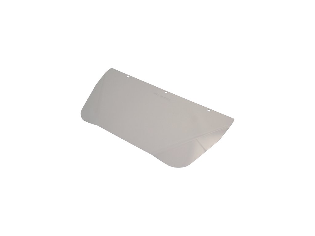 20 cm Acetate visor protects against medium energy high-speed particles at 120 m/s (270 mph), liquid droplets and molten metal
