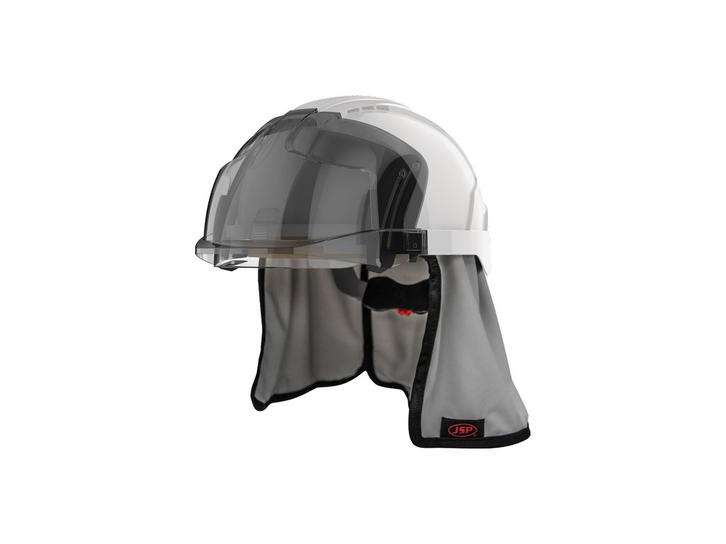 The EVO® Neck Cape when worn correctly, offers a protection factor of 50 against sun burn causing UV. Machine washable at 40°C. Compatible with the full range of JSP Evolution® Safety Helmets.