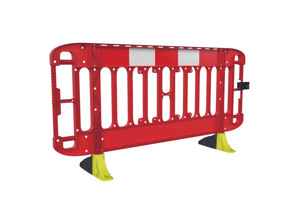 bezkonkurenčná pevnosť a odolnosť; vyrobená z najodolnejších pôvodných materiálov (Polypropylén, PVC); reflexný panel - trieda R1 s vysokou reflexivitou, o 20% viac odráža svetlo ako štandardný reflexný materiál; ANTI-TRIP FEET - Prelisovaný design masívnych nôh, ktorý zabraňuje nehodám; SURELOCK™ Bariérová konektorová svorka – bariéry možno vzájomne spájať aj na nerovnom povrchu a obrubníkoch; chytrá zámková konštrukcia maximalizuje stabilitu pri skladovaní a preprave