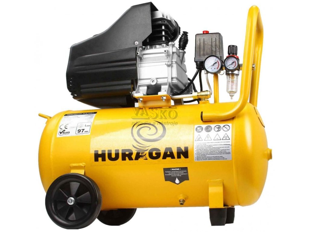 Olejový kompresor s objemom vzdušníka 50l. Prísun vzduchu zabezpečuje 1-piestový motor s výkonom 2 HP. Kompresor je tak vhodný nie len na hustenie pneumatík, ale aj na pripojenie rôzneho pneumatického náradia.