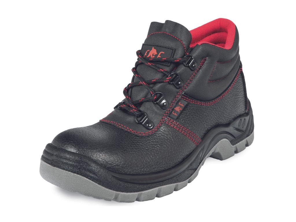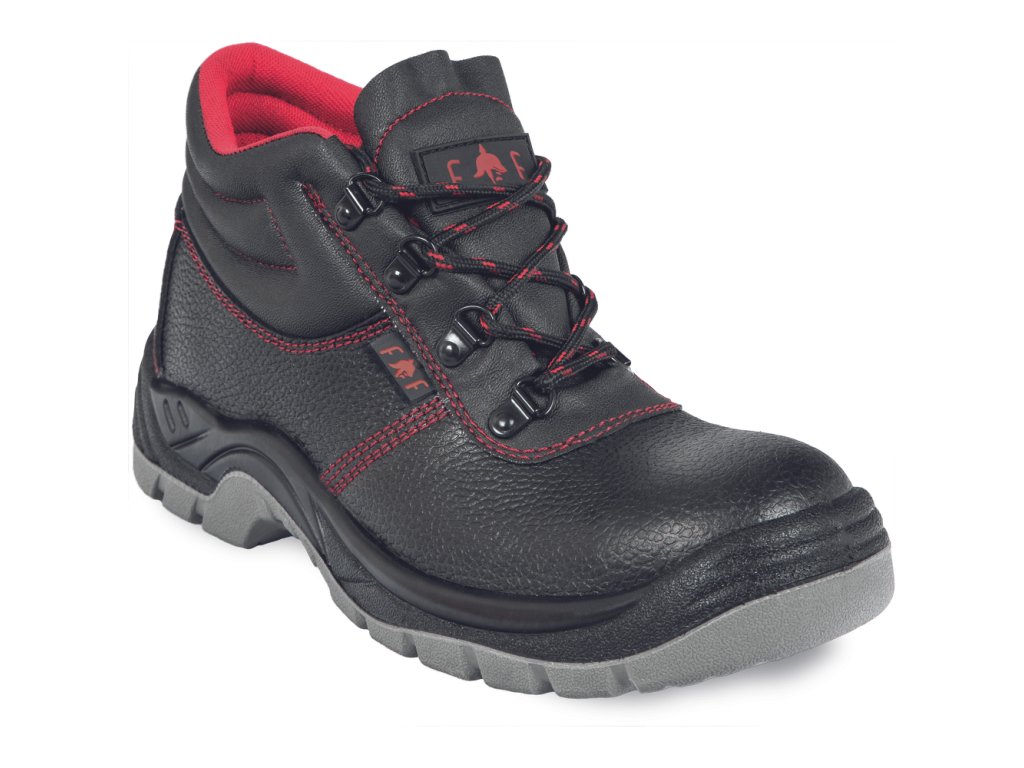• bezpečnostná členková obuv s oceľovou bezpečnostnou špicou • stielkou proti prepichnutiu • PU/PU podošvou rezistentnou voči olejom • zvršok – reliéfna štiepaná koža