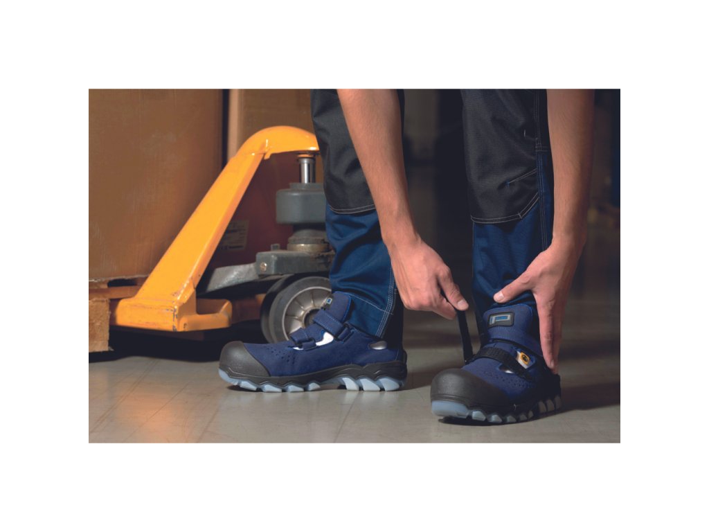 safety sandal with composite toe cap and puncture resistant composite insole; double-layer antistatic sole made of low-density polyurethane and durable TPU, which is resistant to oils and abrasion; the breathable upper of the shoe is made of microfiber and the inner lining is made of breathable Airnet mesh material; ESD