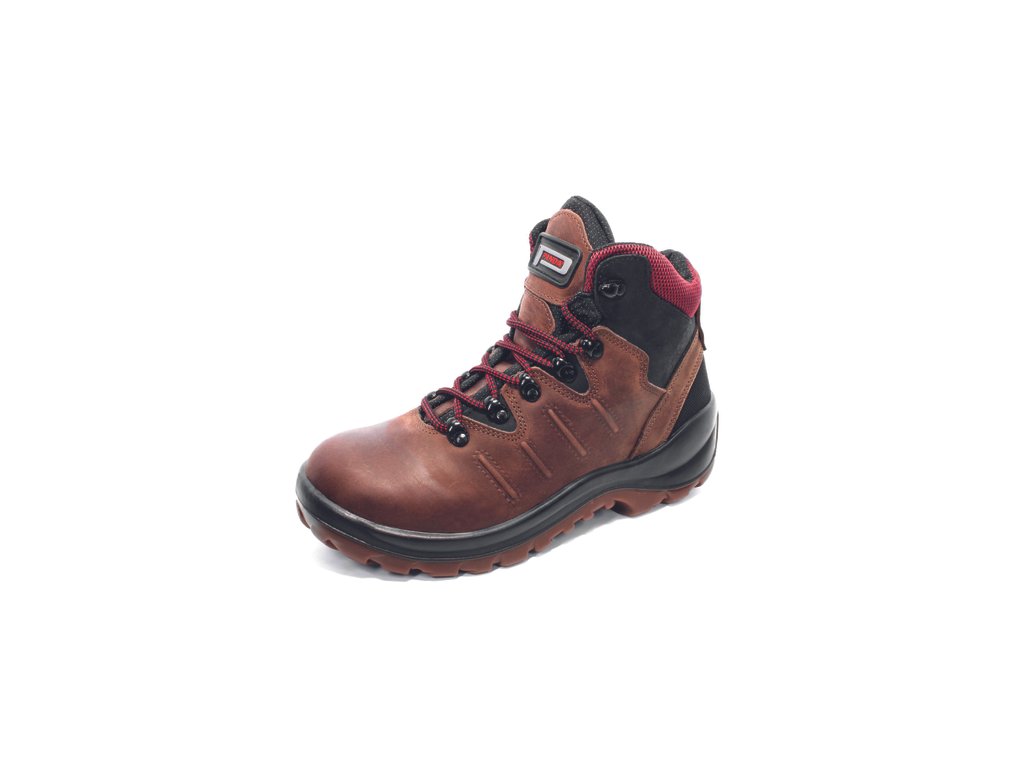 • bezpečnostná členková obuv s oceľovou tužinkou a stielkou • TPU podošvou rezistentnou voči pohonným hmotám • priedušnou podšívkou • absorpciou energie v päte • vodeodolný zvršok z kože
