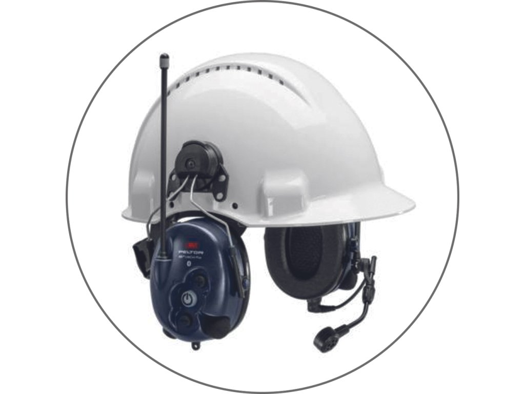 ear muffs with built-in analog two-way radio; noise level-dependent technology helps improve situational awareness and communication; Bluetooth® multipoint connection enables seamless connection of mobile devices; quick activation of the function depending on the noise level; IP68 waterproof noise canceling microphone; voice-activated transmission (VOX) for hands-free use in high-noise environments; helmet attachment; rechargeable lithium-ion battery