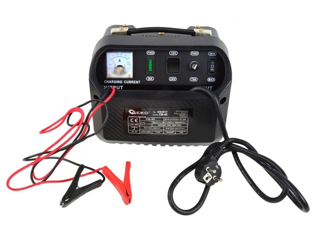 Nabíjačka autobatérii CB-40 určená na nabíjanie olovených batérií (STD) s napätím 12V, alebo 24V, použitých v automobiloch, dodávkach, nákladných automobiloch atď. Má vstavanú poistku, ktorá chráni zariadenie pred nesprávnym prepojením polarity a skratom.