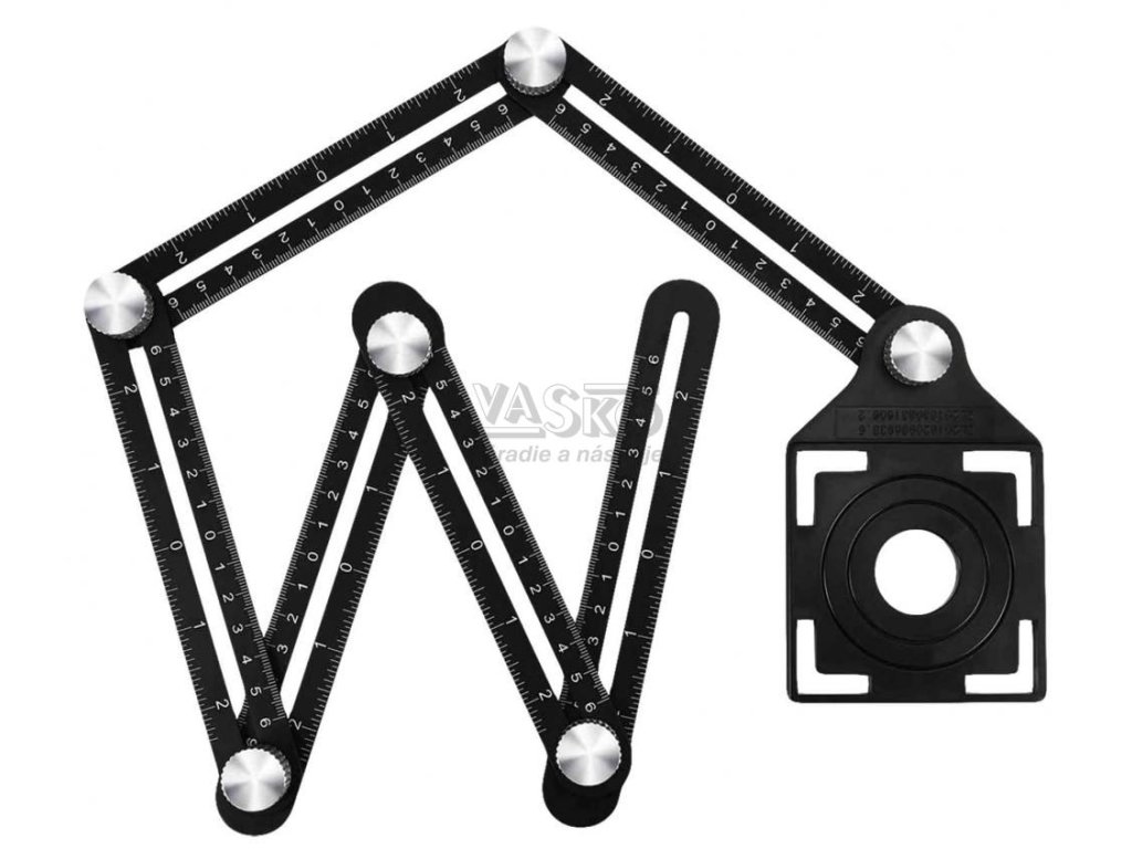 Nastaviteľná hliníková šablóna s predlohou otvorov je nástroj určený na precízne reprodukovanie tvarov a ich prenos na rôzne materiály, ako sú dlaždice, kamenina, glazované dlaždice, sklo alebo drevo. Uholník vyrobený z hliníka je vybavený trvalou stupnicou, ktorá zvyšuje jeho funkčnosť a presnosť merania. Šablóna otvorov rôznych veľkostí umožňuje jednoduché a presné označenie umiestnenia vyrezaných otvorov, čo je užitočné najmä pri dokončovacích a montážnych prácach.