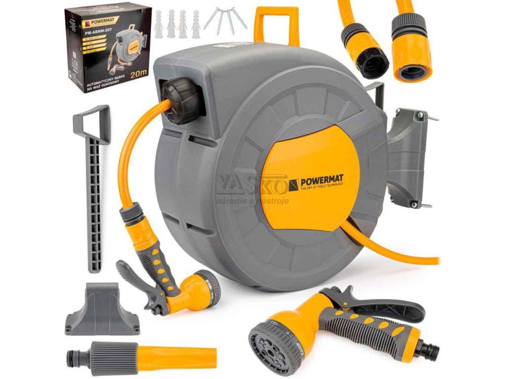 Navíjací bubon s držiakom na stenu so záhradnou hadicou 20 m, PM-ABNW-20T, POWERMAT