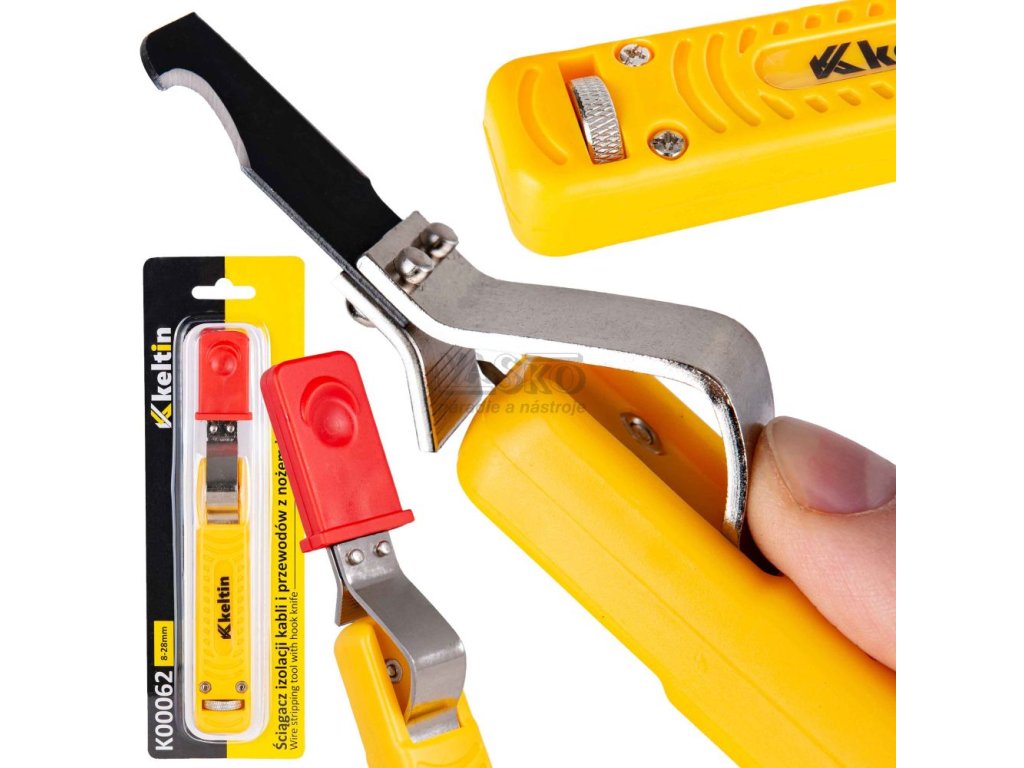 Odizolovací nástroj Keltin na káble a vodiče umožňuje presné odizolovanie vodičov s priemerom od 8 do 28 mm. Je vhodný pre silové, telekomunikačné a ovládacie káble a zaisťuje čistý rez bez poškodenia vodičov.