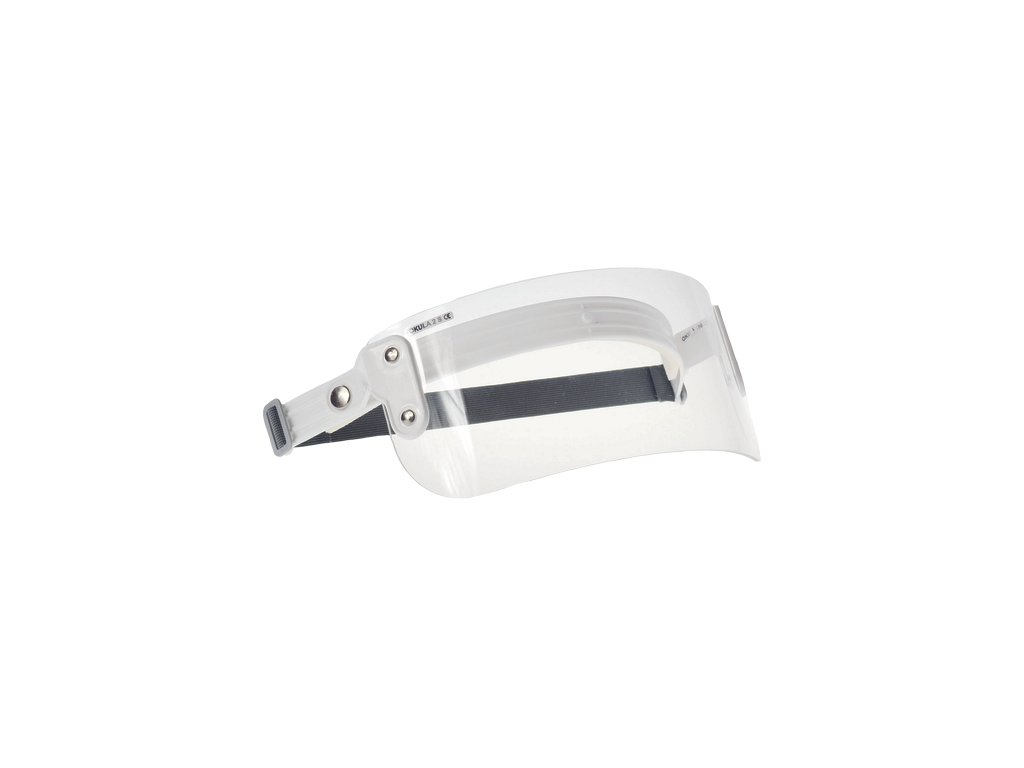 Ochranný štít bez náhlavního nosiče složený z čelního pásu a hledí z čirého PMMA. Hledí lze nastavit do optimální pracovní polohy. Štít je určen k ochraně očí a horní části obličeje proti nárazu velkých pevných částic.