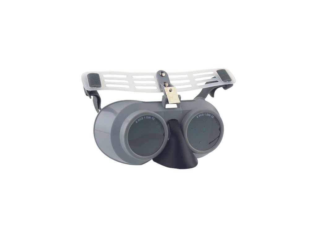 Ochranné sklápěcí brýle se svarovým zorníkem INFRAZOR, s krycím zorníkem s krycí čelenkou a s koženým krytem nosu osazené zorníky INFRAZOR slouží k ochraně očí při nahlížení do pecí, kalení a tavení.