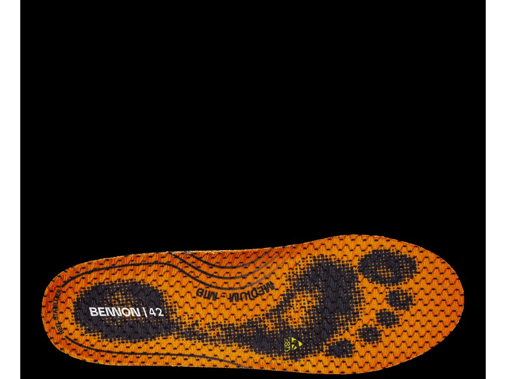 Díky chytrému ergonomickému tvaru, zpevněné patní a klenkové části a odolnému materiálu HiPoly® poskytují dokonalé tlumení nárazů a přirozenou stabilitu kroku. Tvarovaná patní miska rozkládá tlak rovnoměrně a snižuje tak riziko bolesti i při dlouhodobém stání. A díky antibakteriální úpravě a ESD vlastnostem jsou vhodné i do náročných pracovních prostředí a certifikované obuvi.