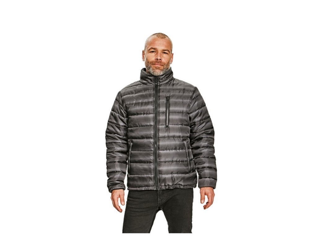 Pánska prešívaná bunda so stojačikom. 2 lištové bočné vrecká na zips, náprsné vrecko na zips,