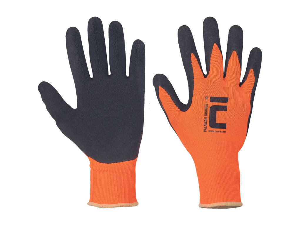 • bezšvové pletené rukavice zo syntetických priadzí • na dlani a prstoch povrstvené latexom