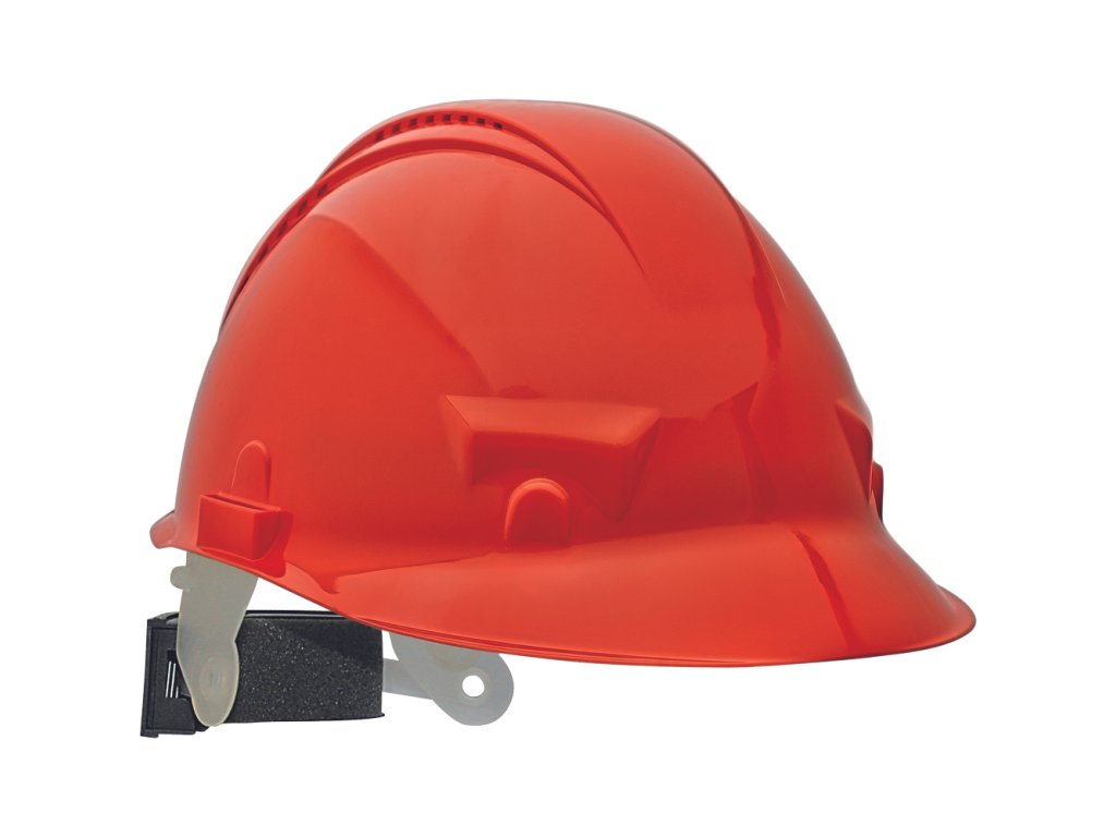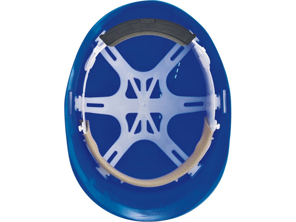 HDPE helmet with ventilation, 6-point head cross and automatically adjustable size (53-62 cm).