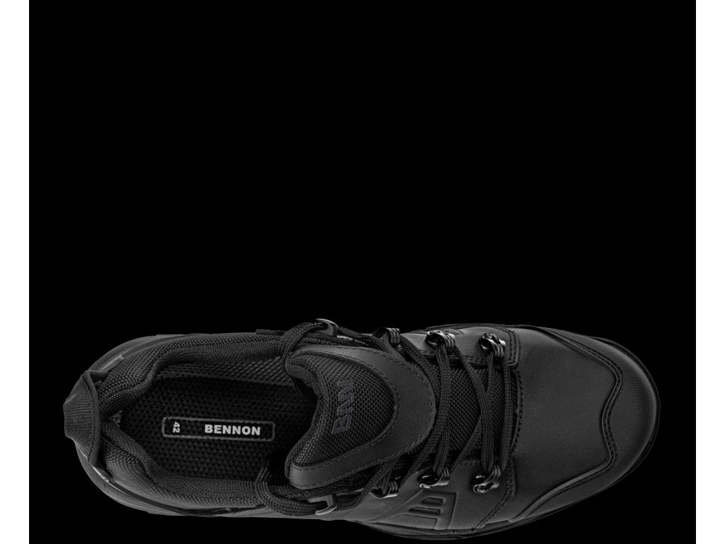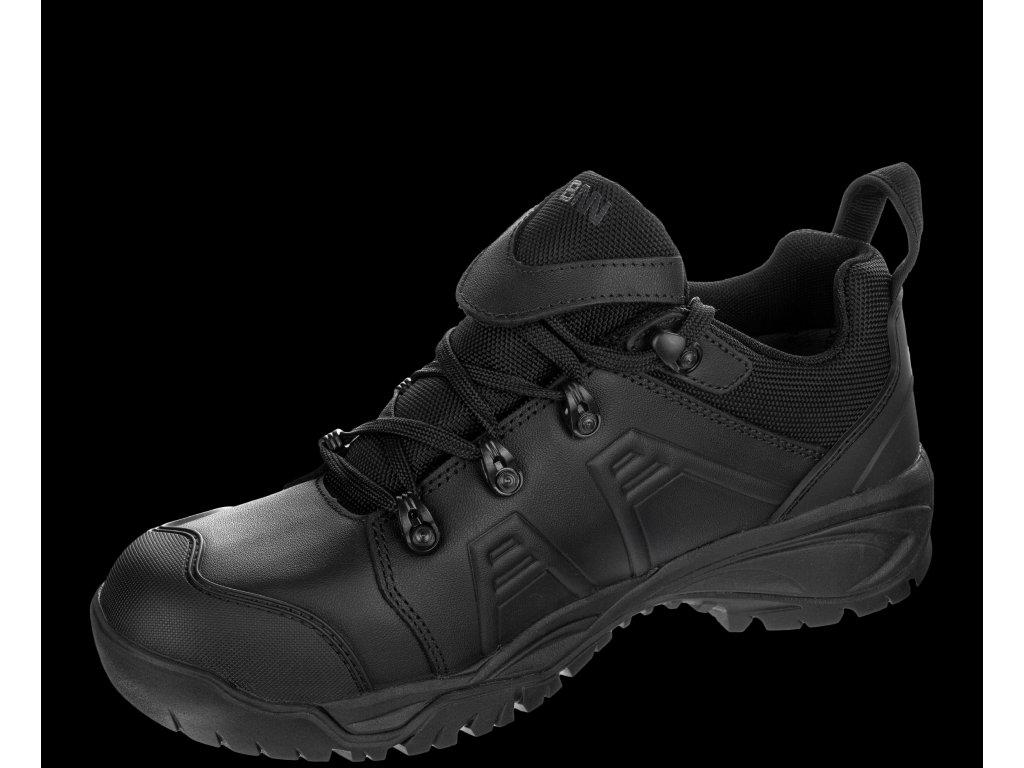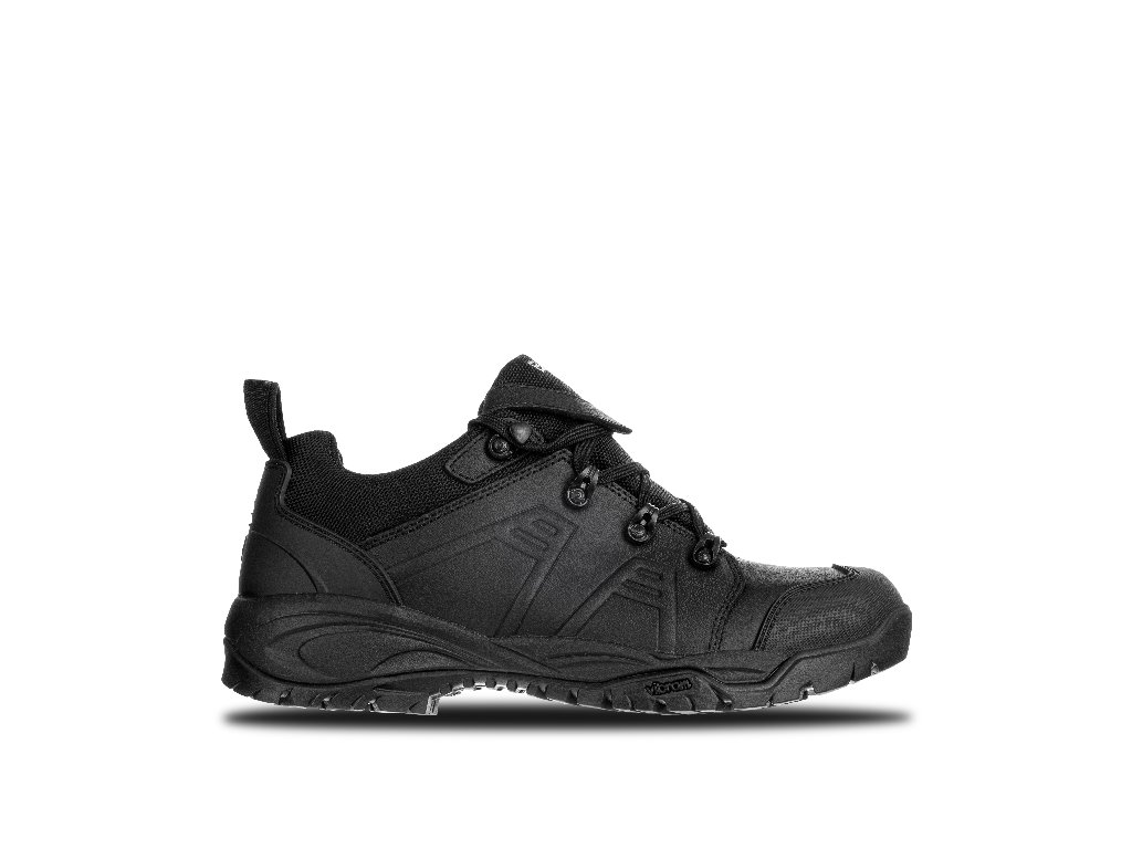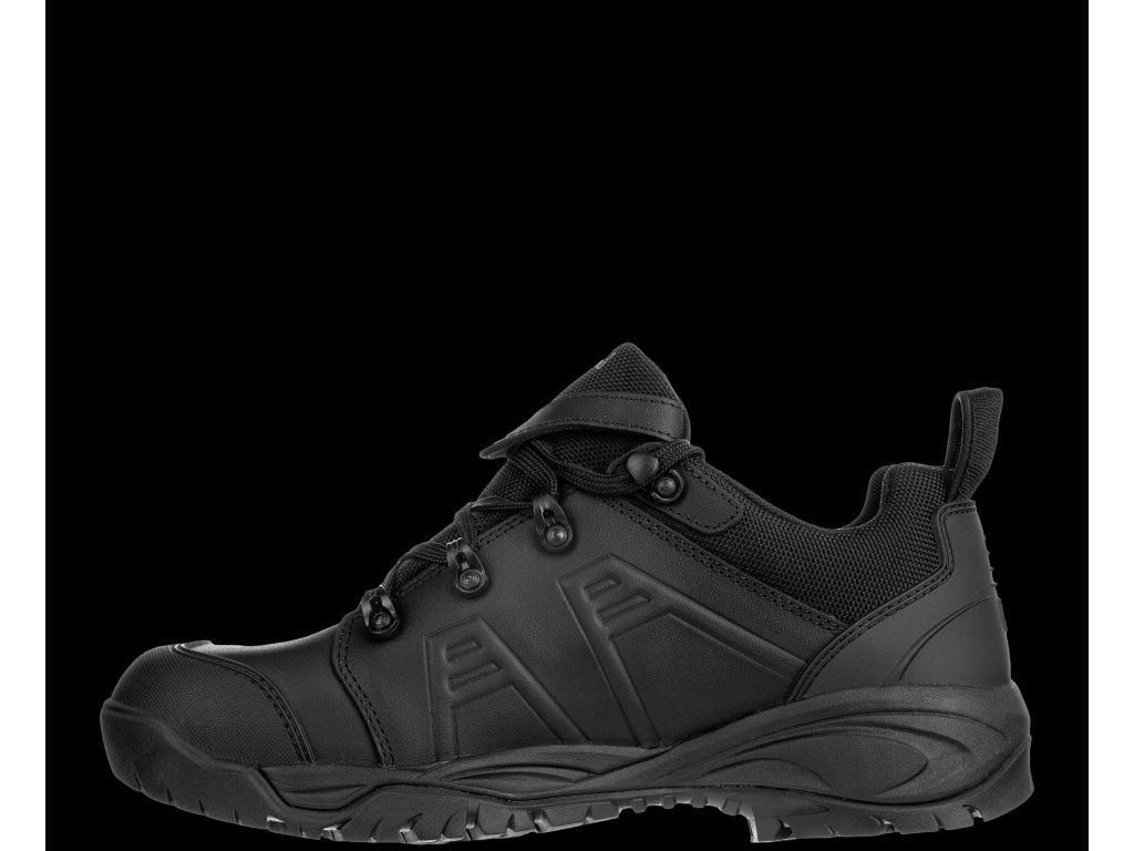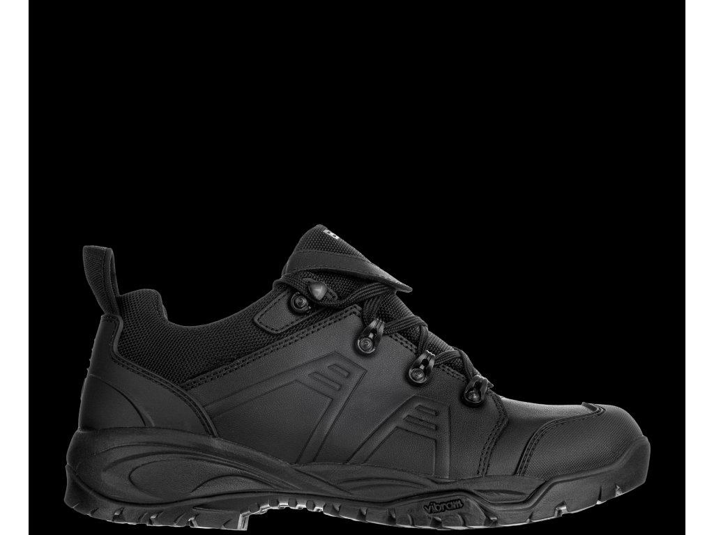 Velmi odolná nízká obuv bez kovových součástí vyrobená z hovězinové usně a mimořádně pevného Cordura materiálu.