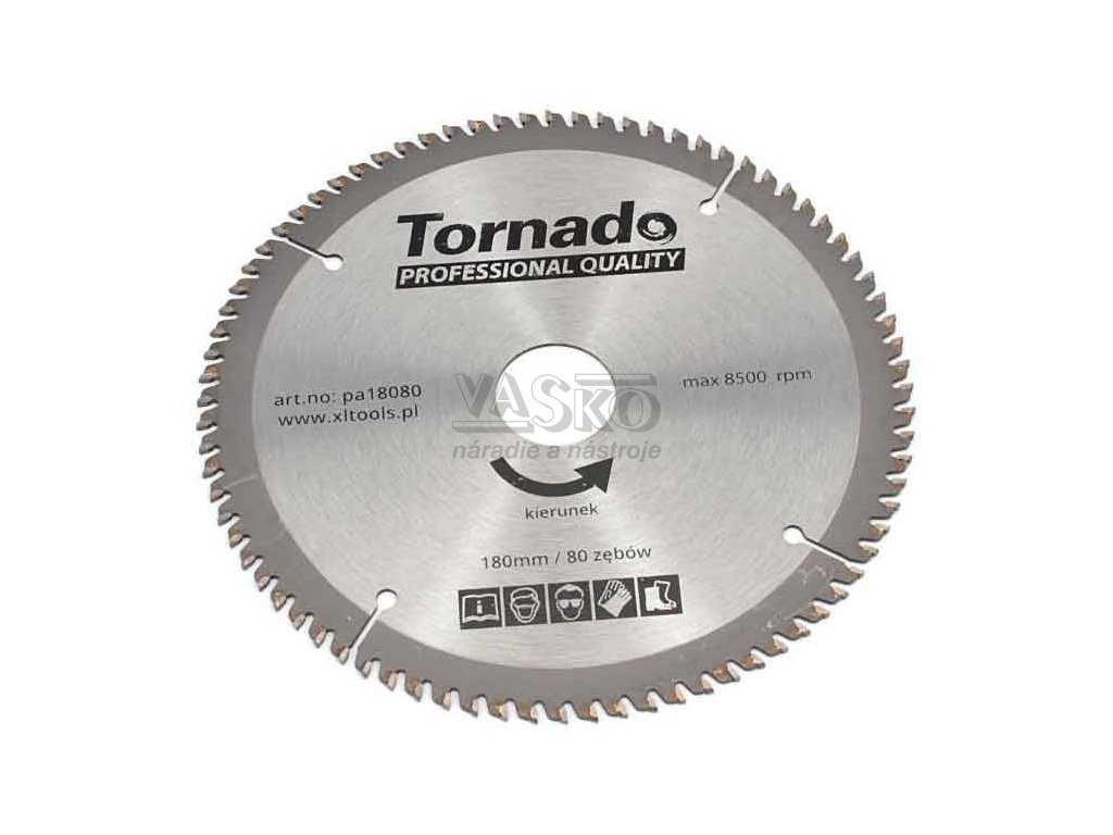 Pílový kotúč s SK plátkami 180 x 2,5 x 30, 80 zubov na rezanie hliníka, TORNADO