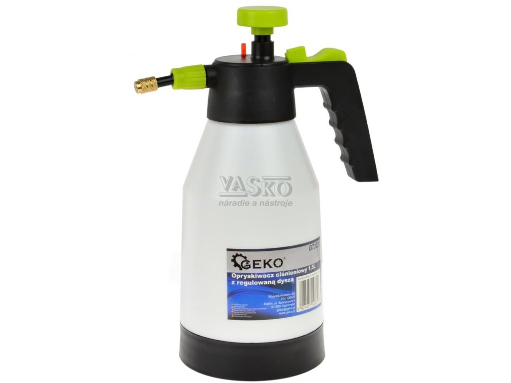 Postrekovač ručný tlakový 1,5 litrov, s nastaviteľnou tryskou 360°, GEKO