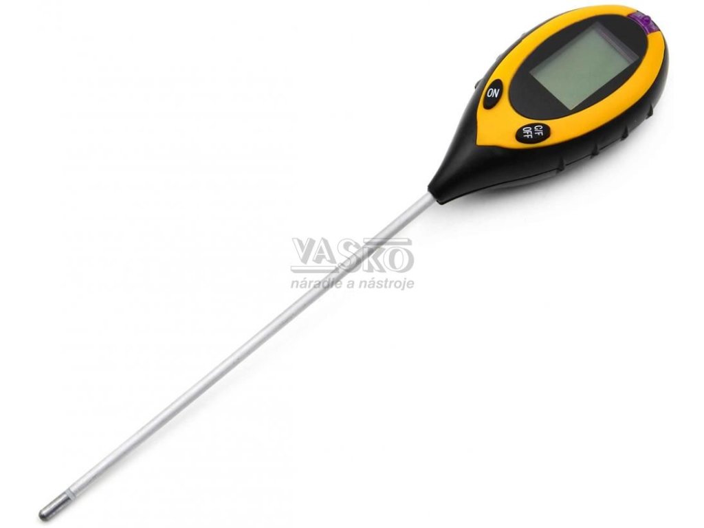 Prístroj, ktorý umožňuje merať kyslosť a vlhkosť pôdy, ako aj teplotu pôdy a intenzitu slnečného žiarenia.
