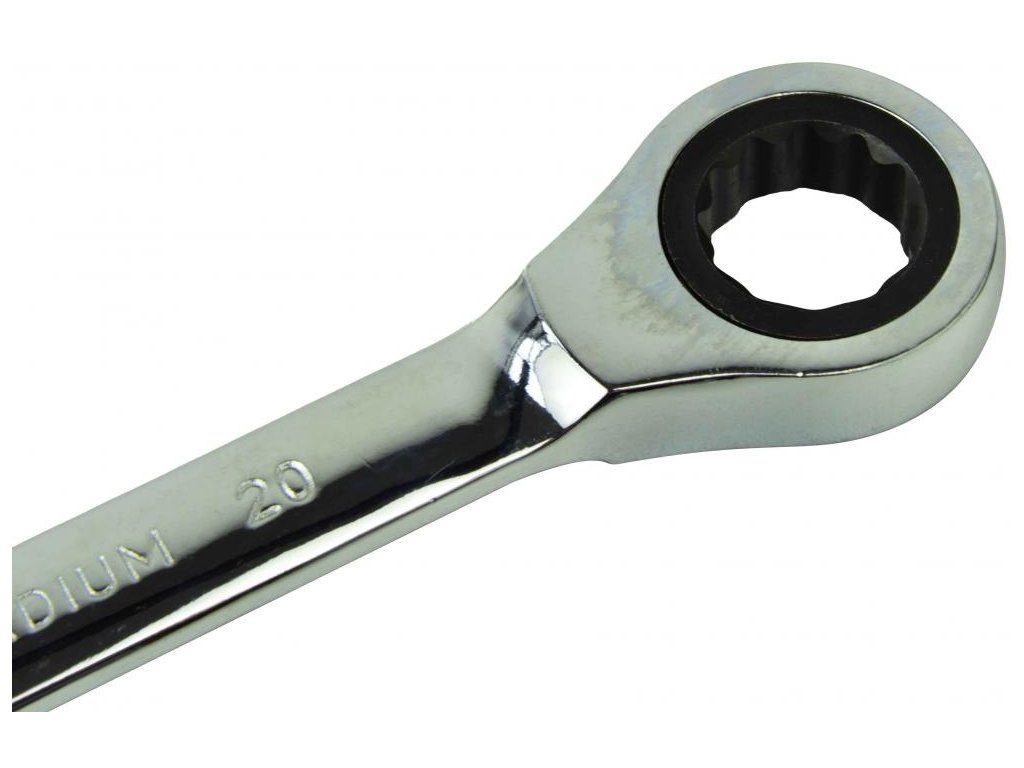 14 mm kombinovaný kľúč s račňou (72 zubov). Kľúč je vyrobený z vysoko kvalitnej chróm-vanádiovej ocele (CRV).
