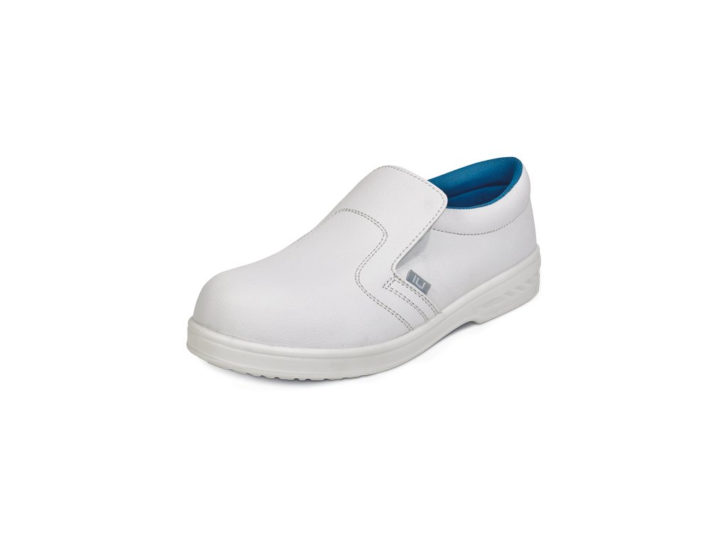 Bezpečnostné mokasíny s bezpečnostnou špicou. PU jednohustotná antistatická protišmyková podošva rezistentná voči olejom a oderu, s absorpciou energie v päte. Zvršok – vodeodolné mikrovlákno, priedušná podšívka s antibakteriálnymi vlastnosťami.