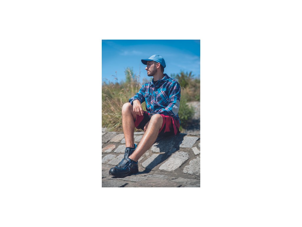 Bezpečnostné sandále s kovovou bezpečnostnou špicou a stielkou odolnou voči prepichnutiu. Podošva z dvoj-hustotného PU s masívnou ochranou proti okopu. SRC podošva odolná voči olejom. Zvršok z kože.