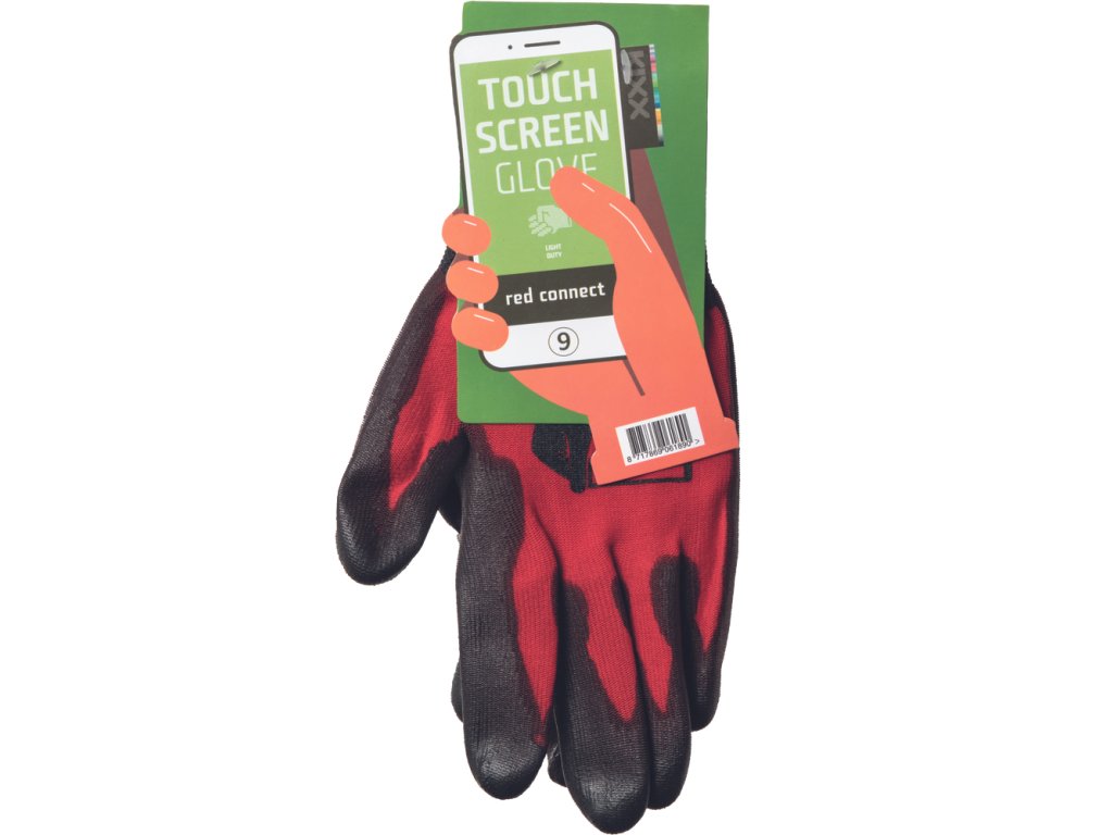 • červená nylonová vložka s čiernym PU dotykovým sklom • vhodná na ovládanie dotykových obrazoviek • dokonalá citlivosť prstov • hladká a ľahká