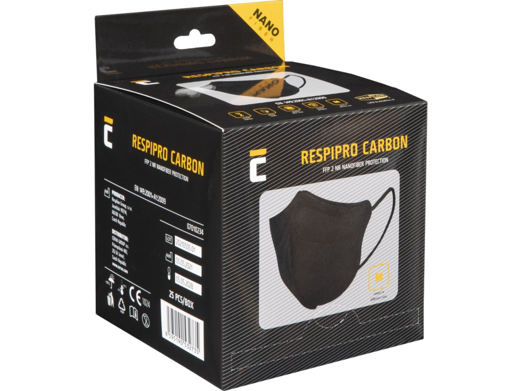 Antivírusový nano respirátor FFP2 RespiPro Carbon zaisťuje vďaka nanovlákennej membráne záchyt vírusov, baktérií, prachu, smogu, peľu a alergénov. Vrstva aktívneho uhlia - carbonu eliminuje pachy. Respirátor má unikátny anatomický tvar, vďaka ktorému perfektne padne na tvár a nedochádza tak k nežiadúcemu podsávaniu vzduchu.