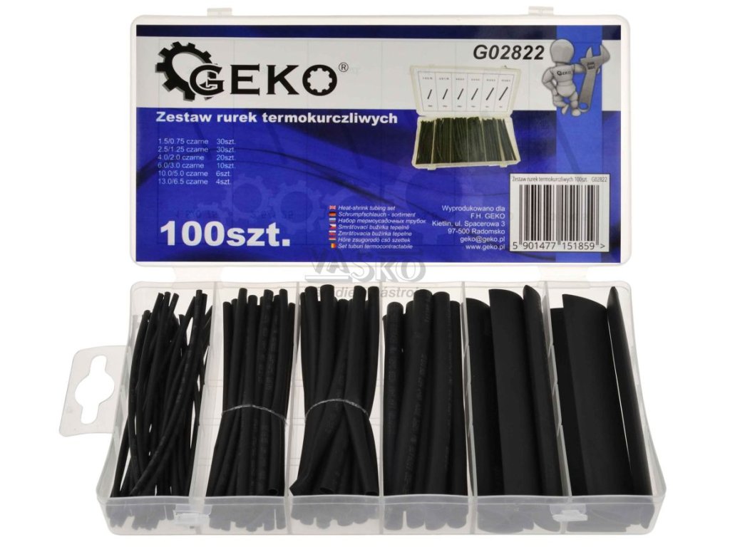Sada čiernych termosťahovacích trubkových izolácii, 100-dielna sada, GEKO
