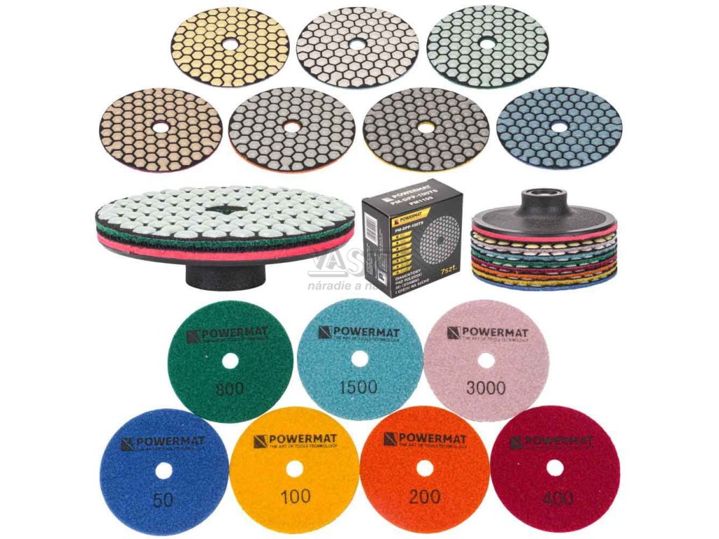 Sada diamantových kotúčov zrno 50-3.000, unášací disk 100 mm, brúsenie na sucho, POWERMAT