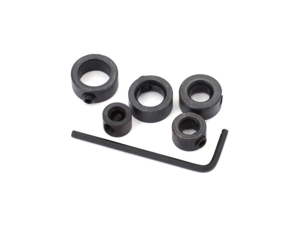 Zarážky vŕtania sú nástroje určené na kontrolu hĺbky vŕtania. Umožňujú presné nastavenie požadovanej vzdialenosti od hrotu vrtáka, čo je kľúčové pri vytváraní otvorov určitej hĺbky. Použitie dorazov zaisťuje rovnomernosť a opakovateľnosť vyvŕtaných otvorov, čo je dôležité najmä pri prácach vyžadujúcich presnosť, ako je inštalácia hmoždiniek. Výrobok pozostáva zo sady piatich kovových krúžkov rôznych priemerov, ktoré sú na vrtákoch zaistené skrutkami v objímkach. Sada obsahuje kľúč na utiahnutie poistných skrutiek.