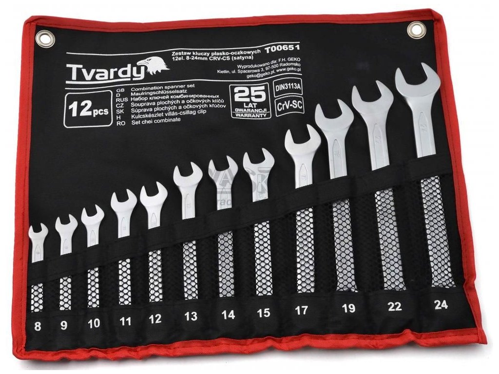 Sada očkoplochých kľúčov, 12-dielna, 8-24 mm v plátenom obale, satinované, TVARDY