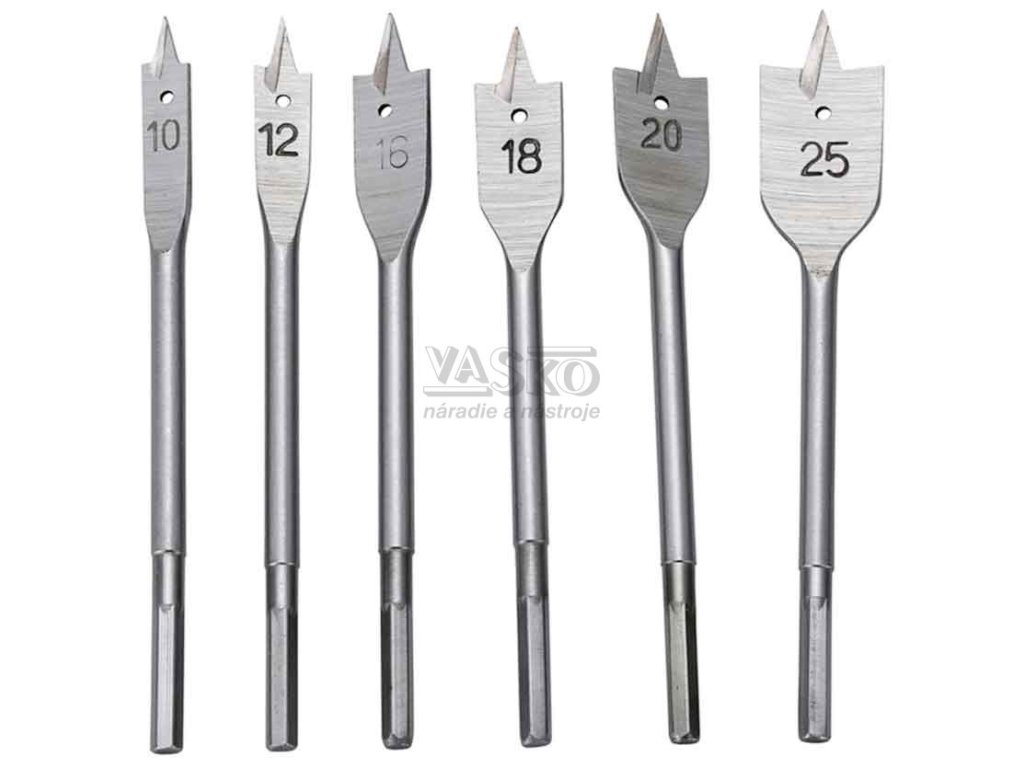 Sada plochých vrtákov do dreva 10, 12, 16, 18, 20, 25 mm, 6-dielna, GEKO