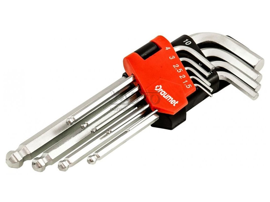 Sada predĺžených imbusových kľúčov 9-dielna 1,5-10 mm s guličkou, EGA