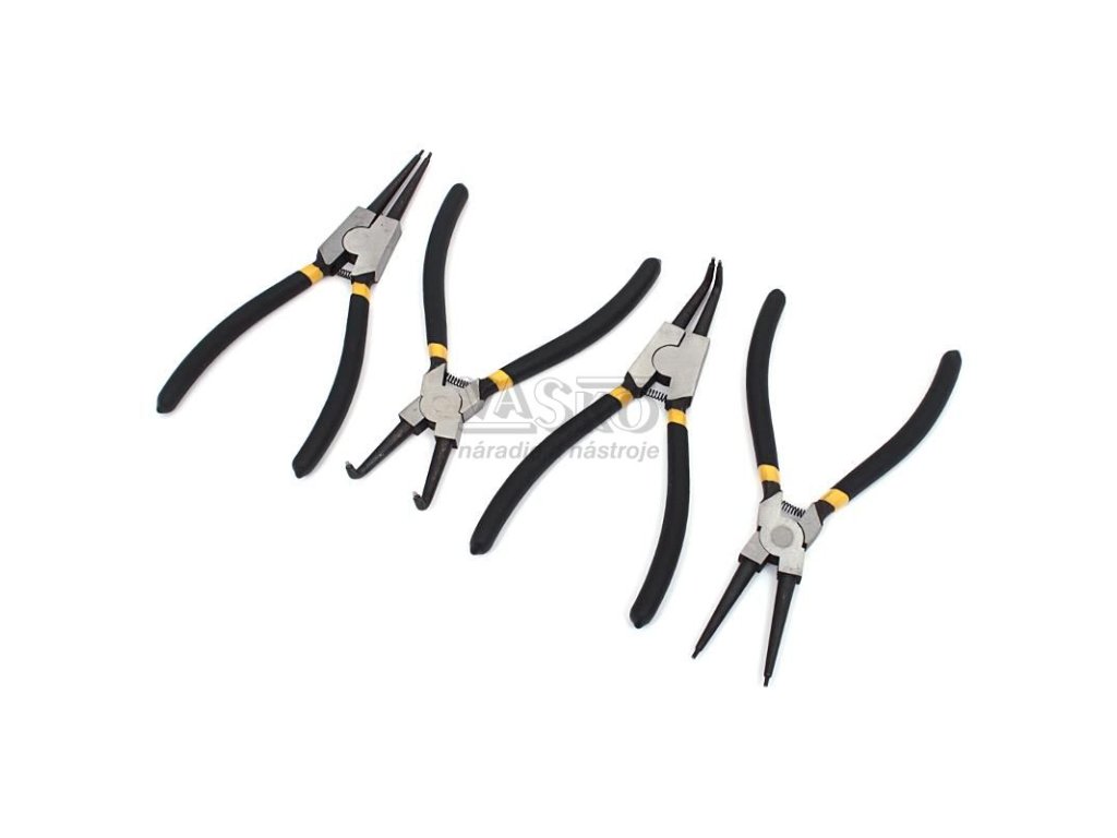 Sada segerových klieští je spoľahlivý nástroj na odstraňovanie a montáž segerových krúžkov. Skladá sa zo štyroch 200mm dlhých klieští, ktoré sú nevyhnutné pri vykonávaní rôznych úloh. Sada obsahuje vnútorné ohnuté kliešte, vonkajšie ohnuté kliešte, vnútorné rovné kliešte a vonkajšie rovné kliešte. Vďaka tomuto nástroju budete môcť pohodlne a efektívne pracovať pri montáži a demontáži prsteňov.
