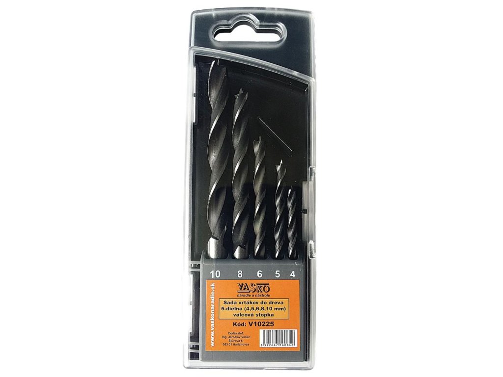 Sada vrtákov do dreva 5-dielna (4,5,6,8,10 mm) valcová stopka, VASKO